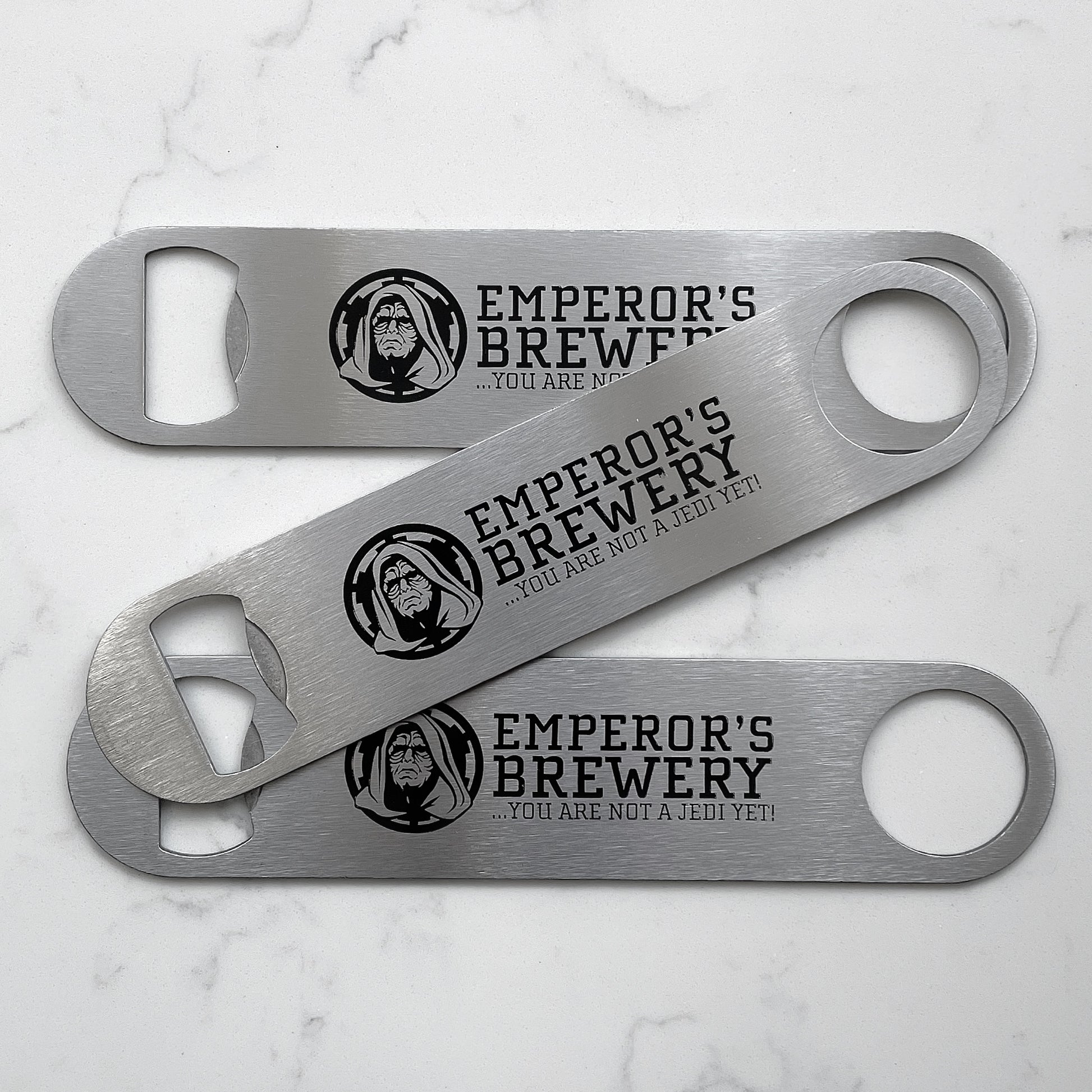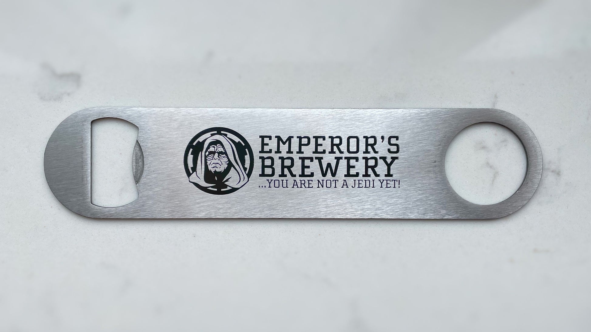 Stainless steel blade with printed one side logo - Emperor’s Brewery...You are not a Jedi yet!