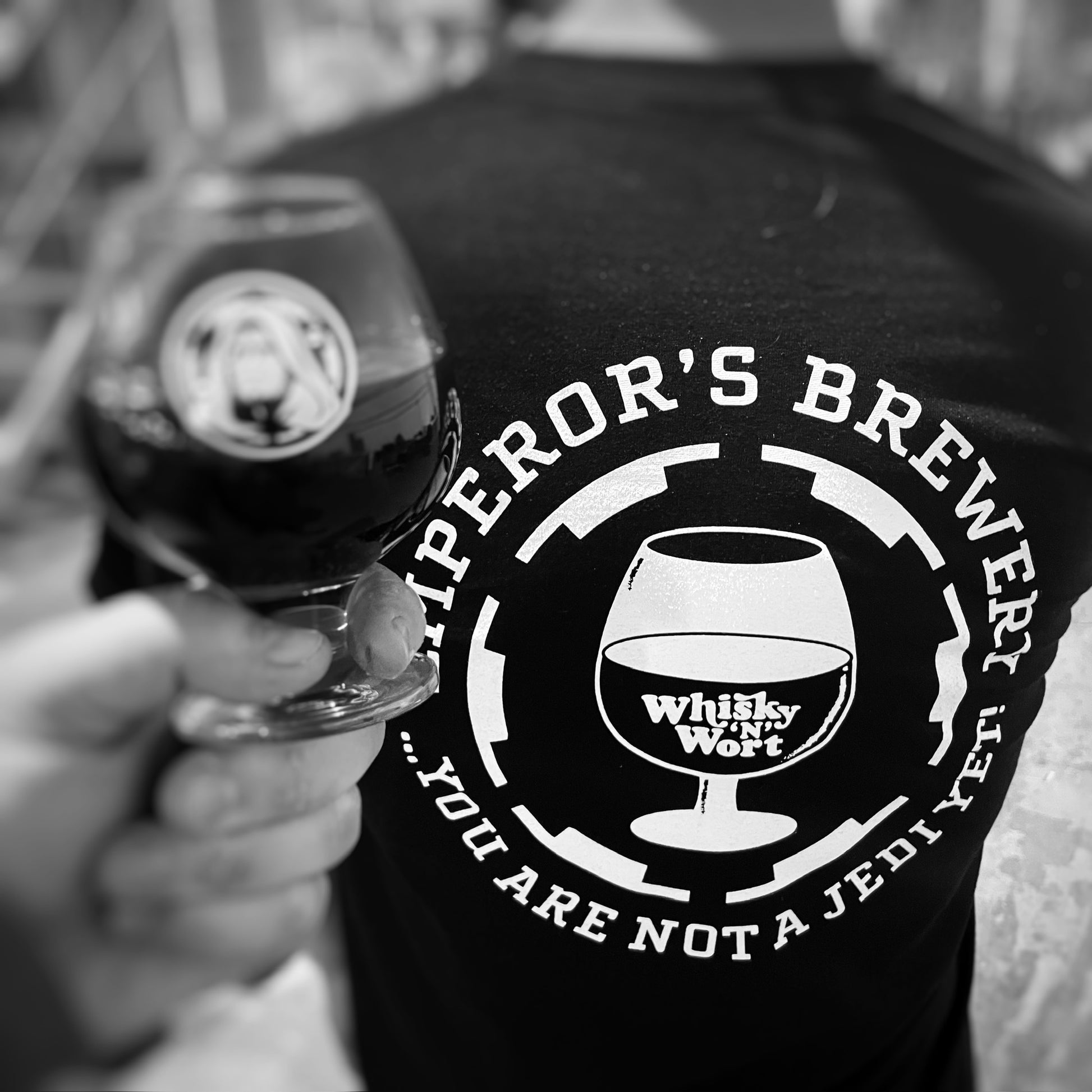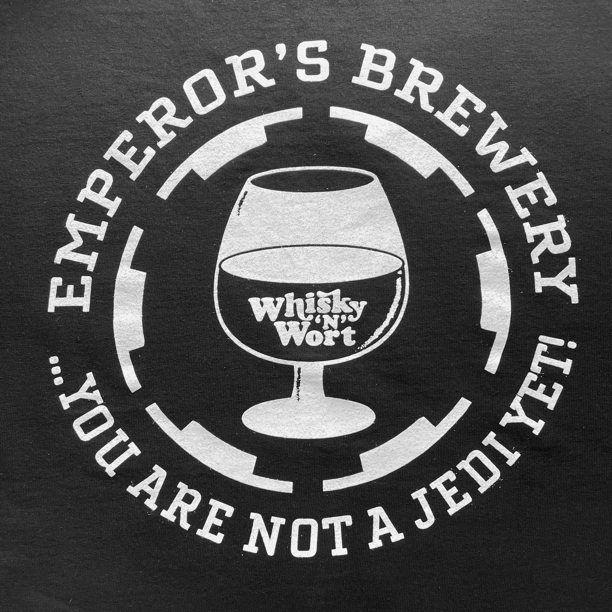 Emperor’s Brewery unisex t-shirts, screen printed logo on front and full Whisky 'n' Wort back print, with inside neck print ...you are not a Jedi yet!